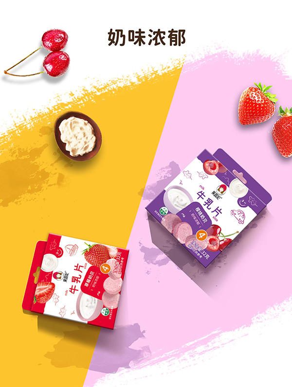 果蔬妃【水果牛乳片】堅(jiān)守安全配方,選用凍干果粉和全脂乳粉,不含白砂糖,奶味濃郁,口味清甜!創(chuàng)新小盒,獨(dú)立包裝,方便攜帶,有櫻桃、草莓兩種口味,隨心選擇。