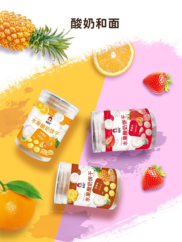 果蔬妃水果酸奶餅干,創(chuàng)新工藝,將酸奶、果汁融入餅干,營養(yǎng)和口感層次更加豐富。獨立包裝,口感與營養(yǎng)的完美搭配,更有菠蘿味、草莓味、香橙味等多種口味,隨心選擇。