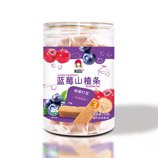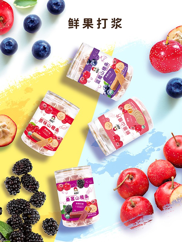 果蔬妃原汁山楂,原料十分簡(jiǎn)單,將新鮮山楂蒸熟后去籽,然后添加鮮果打漿的蘋果、藍(lán)莓和桑葚等,烘烤成型后切塊,獨(dú)立包裝保持水分,最終得到幫助寶寶開胃消食、軟糯可口的果蔬山楂!