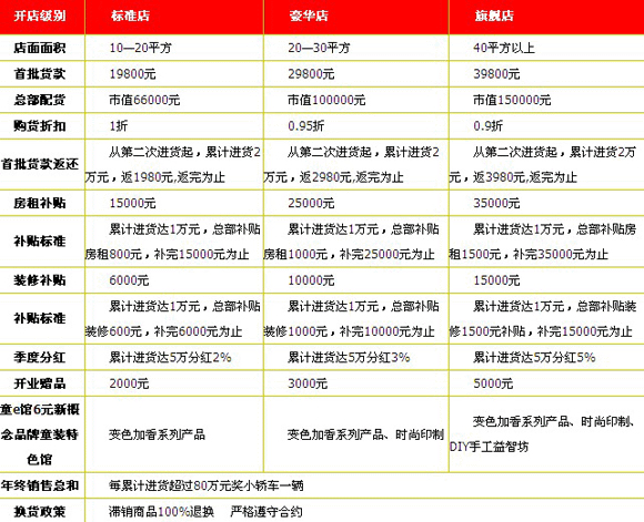 總部對投資者如何選擇店鋪提供合理化建議,并提供詳細的開店啟動方案,免費提供店面裝修方案,免費提供開店經(jīng)營用品和宣傳品、經(jīng)營證件、培訓課程,經(jīng)營手冊等全方面支持,保證全國所有專賣店形象的統(tǒng)一,確保投資者順利開業(yè)。