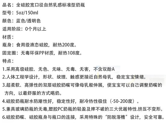 本品采用高級食品級矽膠(Liquid Silicone)制成,無毒、無味、耐高溫120℃可消毒、極好韌性、不易破、更耐用。本品對嬰兒牙床的發(fā)育和牙齦的保護有特殊效果。能促進嬰兒牙齒的正常發(fā)育及臉部肌肉運動。