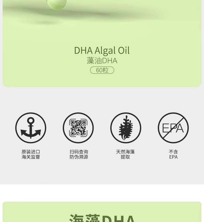 ②DHA含量高不含EPA