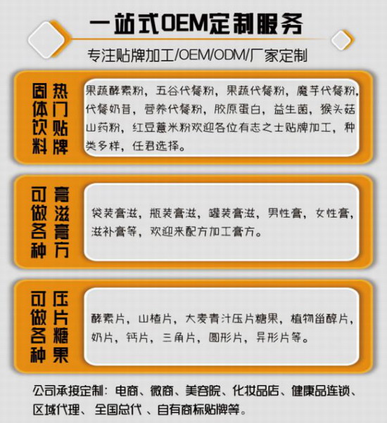 孕婦堿性營(yíng)養(yǎng)蛋白貼牌代加工孕期微量元素補(bǔ)充劑代加工廠家哪家專業(yè)?武漢華源晨泰免費(fèi)寄樣,專家免費(fèi)組方,一件也貼牌專業(yè)貼牌15年,食品、保健品、保健食品片劑、粉劑、膏滋、膠囊代加工,是私人專屬品牌的差異化定制生產(chǎn)過(guò)程。