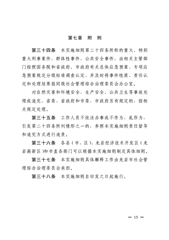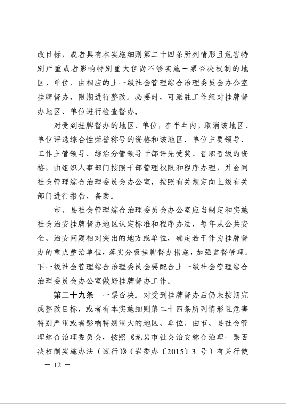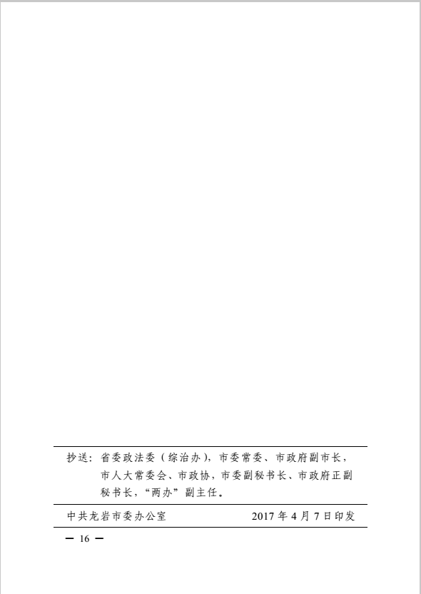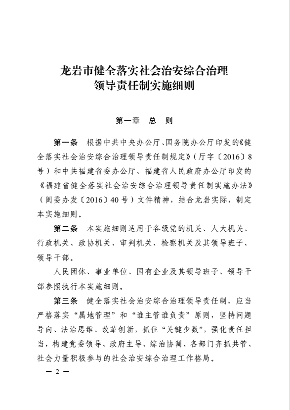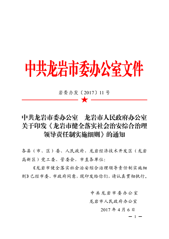 龍巖市健全落實社會治安綜合治理領(lǐng)導(dǎo)責(zé)任制實施細則(巖委辦發(fā)【2017】11號)
