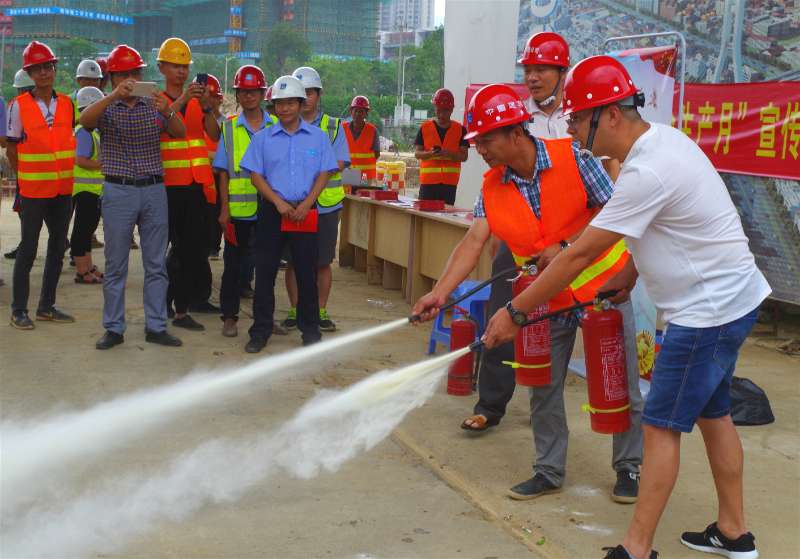 6月16日是“全國安全生產(chǎn)宣傳咨詢?nèi)铡薄.?dāng)日,龍巖城發(fā)集團(tuán)與市城投公司組織人員分別前往中心城區(qū)華蓮西路一期、火車站站前高架橋、龍巖大橋高架橋、龍巖大道四期下穿工業(yè)路通道等四個(gè)項(xiàng)目工地,開展安全生產(chǎn)宣傳活動(dòng)。圖為工作人員現(xiàn)場指導(dǎo)工人使用滅火器。