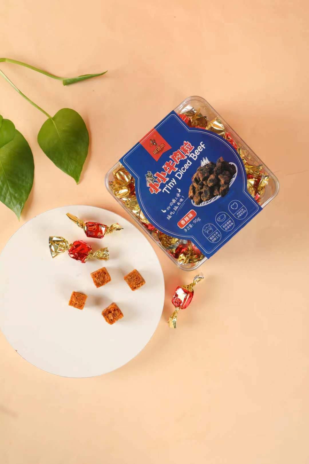 斑迪鹿小小牛肉粒,獨(dú)立包裝的牛肉粒,撕開包裝袋,一股牛肉味撲鼻而來。牛肉粒是正方形的粒狀,精選優(yōu)質(zhì)牛肉,經(jīng)多道熱加工工藝,再通過低溫慢熱烘烤得來,肉香濃郁,嚼勁十足,健康零食新選擇。